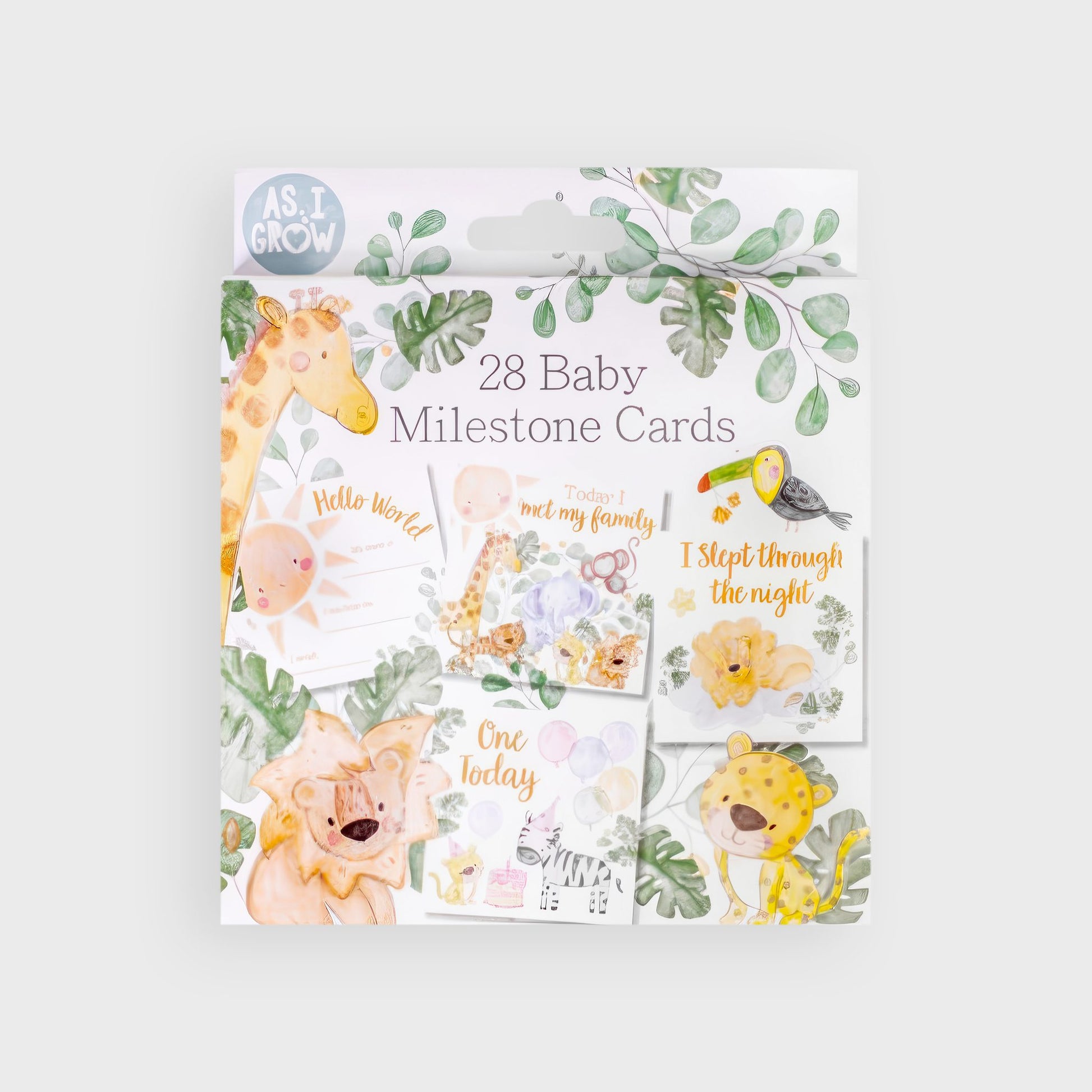 Capture every precious moment with the As I Grow 28 Milestone Moment Cards. Beautifully illustrated with a mix of safari animals, floral accents, and cheerful suns, these charming cards are perfect for documenting your baby’s journey—from their first smile and steps to birthdays and beyond. Printed on high-quality 350gsm card, each 12cm x 12cm square is durable and delightful, making them ideal for keepsake photos and memory books. Suitable for baby boys and girls, this set makes a thoughtful gift for new parents.