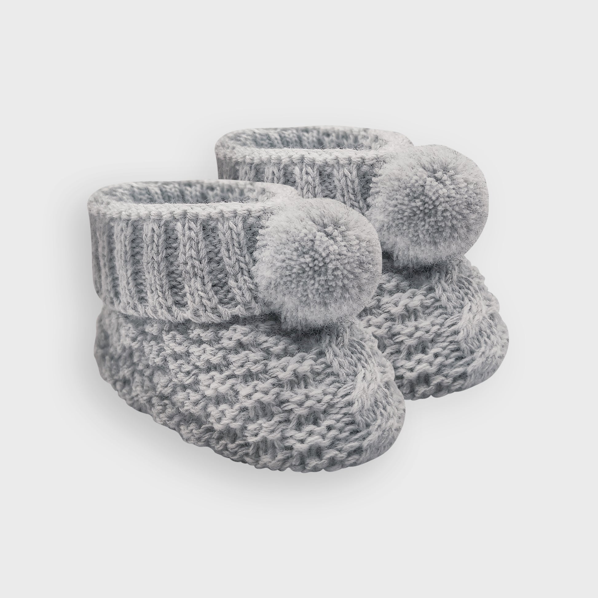 Check Knit Grey Pom Booties