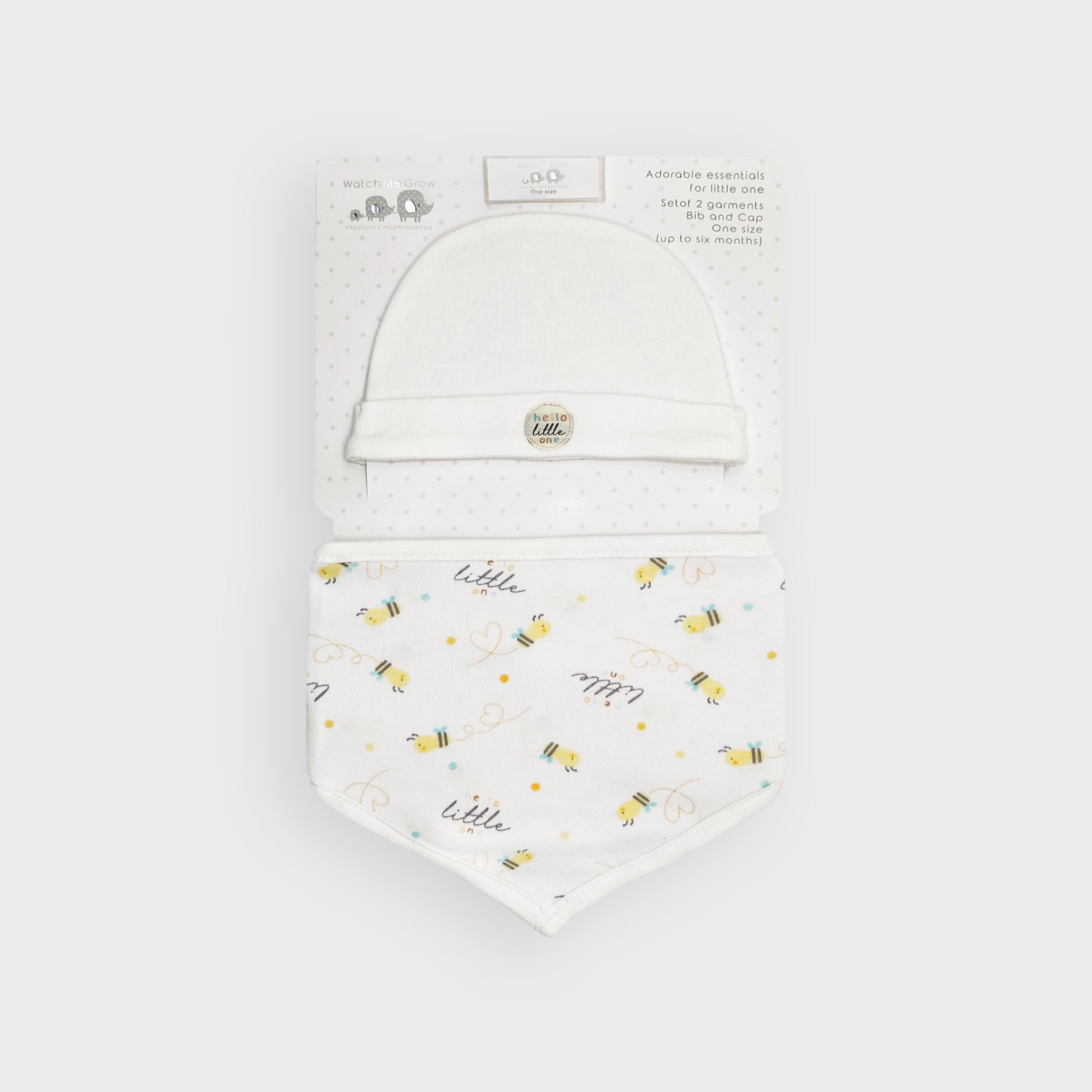 Sweet and simple, the Watch Me Grow Hat & Bib Set is the perfect everyday essential for your little one. The soft white layette hat is made from 100% cotton jersey with a turned-up brim, providing gentle warmth and comfort for delicate skin, these hats are not only soft but comfortable around baby's head. The matching white bandana-style bib features an adorable bee design and secures easily with a Velcro fastening, these bibs are super soft for your baby's skin, making it both practical and charming. Ideal for boys and girls, this unisex set brings a touch of nature-inspired cuteness to any outfit.