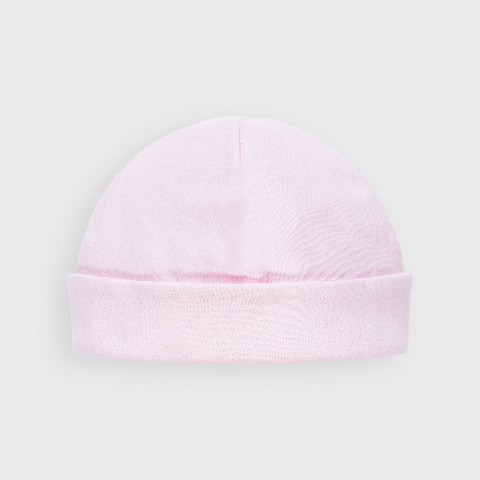 Keep your baby girl snug and sweet with the Soft Touch Cotton Layette Hat in soft pink. Made from 100% soft cotton jersey, this adorable hat is designed to gently hug your baby's head, providing warmth and comfort from day one. The turned-up brim adds a classic touch while helping to keep little ears cosy. Perfect for everyday wear or special outings, it’s an essential piece for your newborn’s wardrobe.